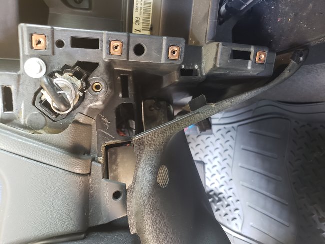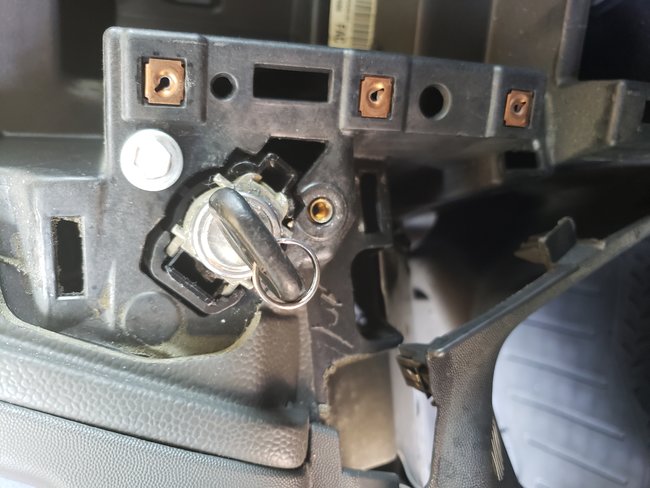 Turned car off and key is stuck in ignition. Shifter moves freely between all gears, but does not make the typical "park" click. It still locks and unlocks the doors. I disassembled the radio to start to remove the entire ignition assembly, but cannot seem to find where Ia m supposed to remove it through, no practical exit. Have been having issues with the switch (will turn over and shut off or had to wiggle key a d flip it to get it to go in), but since it is not driven much we kept putting it off. Any assistance would be much appreciated.