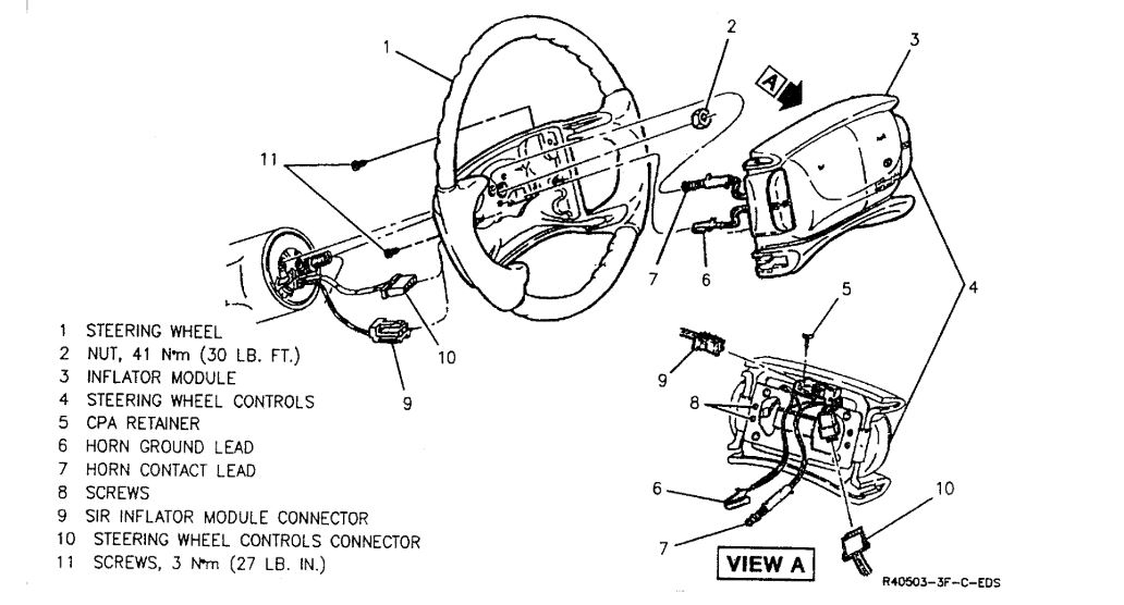 5. Inflator module; refer to "Inflator Module - SIR". Do not pinch any wires.