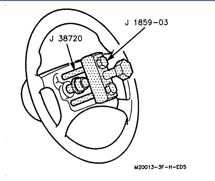 5. Steering wheel, using J 1859-03 and J 38720. Be sure to use the correct size bolts for pulling the wheel.
