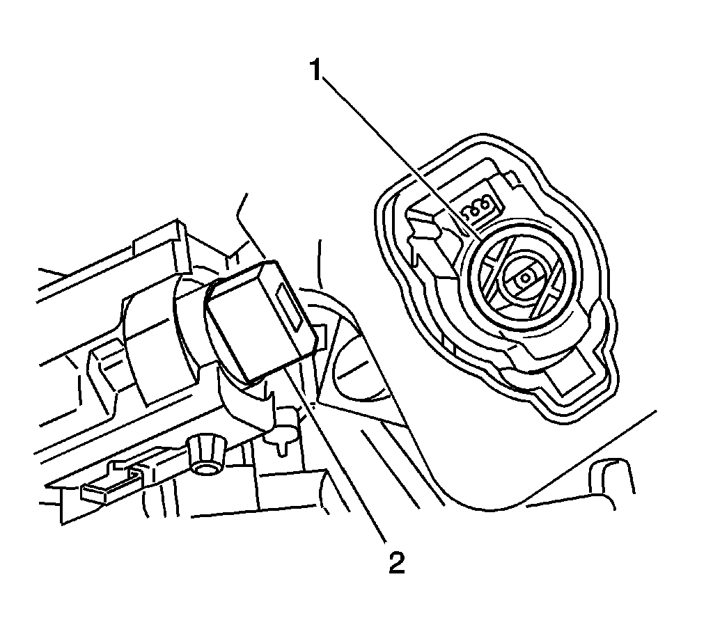 3. Position the lock cylinder to the ignition switch. Press the cylinder into place. If you turned the key slightly while removing the lock cylinder, you may have to align the white colored ignition switch rotor (1) with the lock cylinder (2). You can rotate the ignition switch rotor (1) with your finger.
