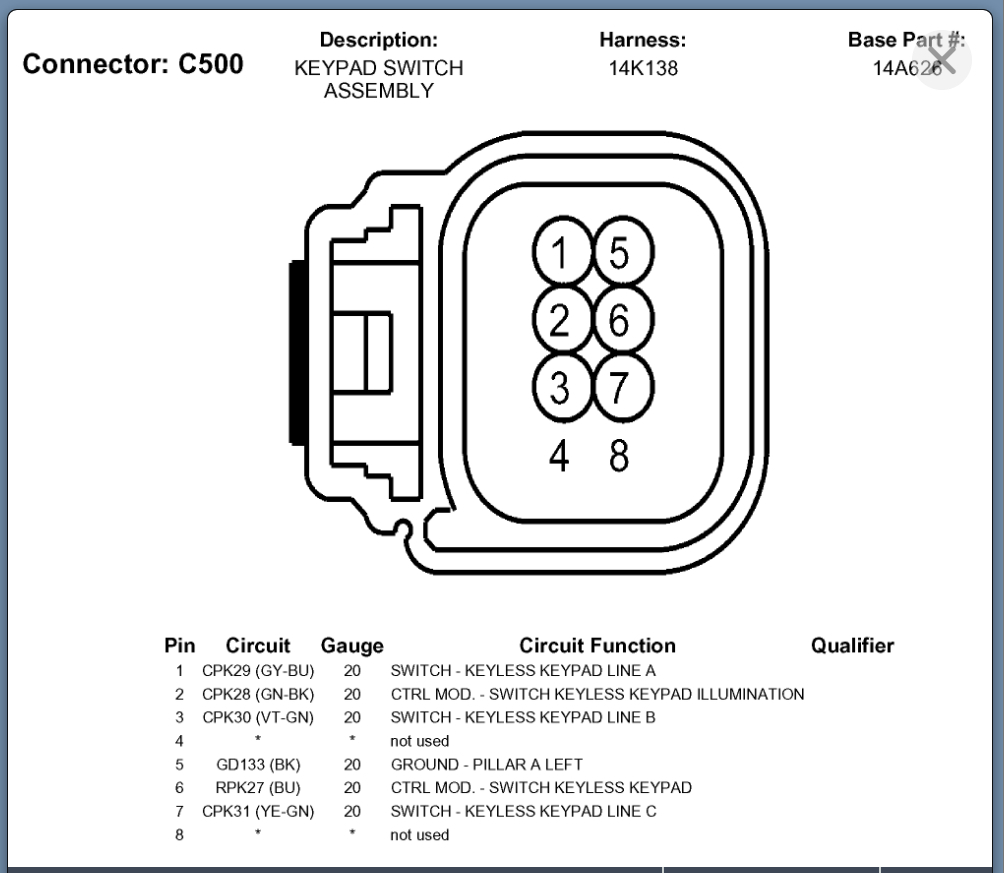 I would pick up the keypad. So, we need to check the voltage going to the pad and if there is none then we go back to the SJB and check for voltage coming out.