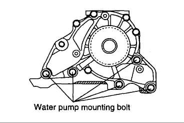 Install the new engine coolant pump gasket and pump assembly. Tighten the bolts to the specified torque. Tightening torque