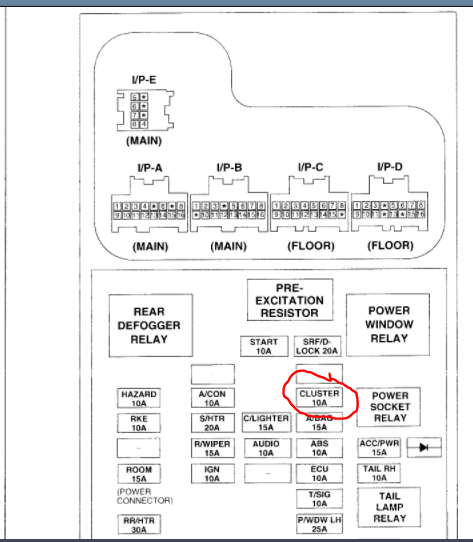I've attached a picture below of the fuse box that is located in the passenger compartment under the dash on the left side near the steering column. I've circled the cluster fuse on the attached picture in red. Hope this helps and thanks for using 2CarPros.
