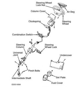 Position front wheels straight ahead. Disconnect negative battery cable. Remove steering wheel and combination switch. See STEERING WHEEL and COMBINATION SWITCH . Remove steering lock assembly. See STEERING LOCK ASSEMBLY .