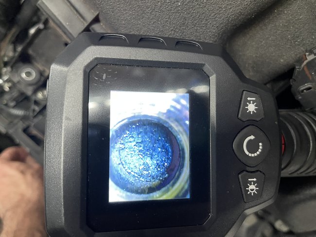 We went in with a bore scope to look for coolant and it was dry. He orders an intake manifold and EGR pipe because of the bulletin without reading what the conditions for replacement should be. He installs it and the same cold start sound. He got lucky that in one of those starts the engine kept rattling around and we were able to look at the misfire counting up. We checked the coil, and it had no spark.
