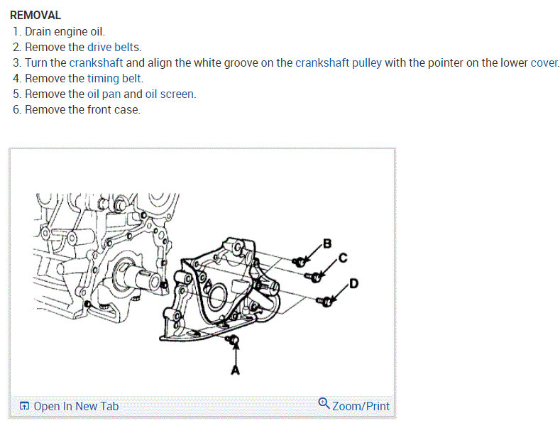 If you look at the attachments below, they include the directions and related pictures for removal, inspection, and replacement of the oil pump.