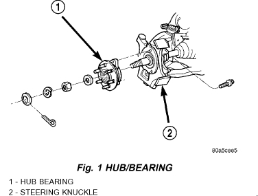 Remove hub bearing bolts and hub bearing from the knuckle (Fig.1).