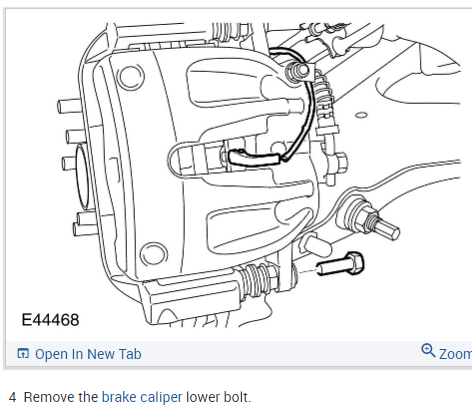 5 Remove the brake caliper lower bolt.