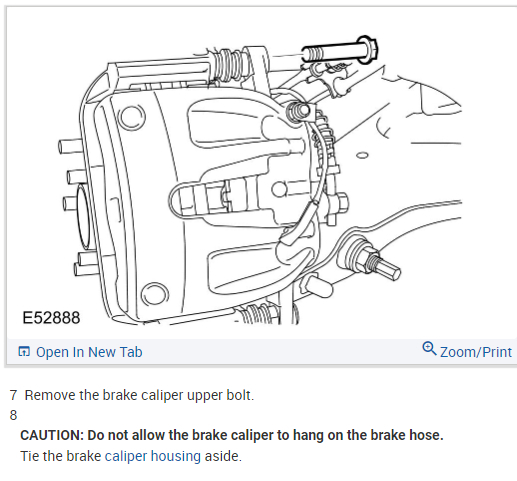 CAUTION: Do not allow the brake caliper to hang on the brake hose.