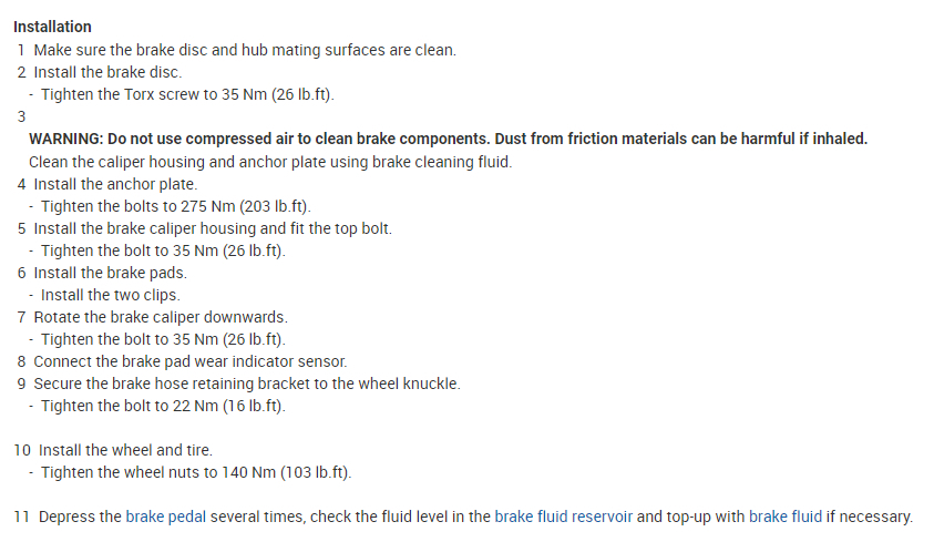 - Tighten the bleed screw to 14 Nm (10 lb.ft).