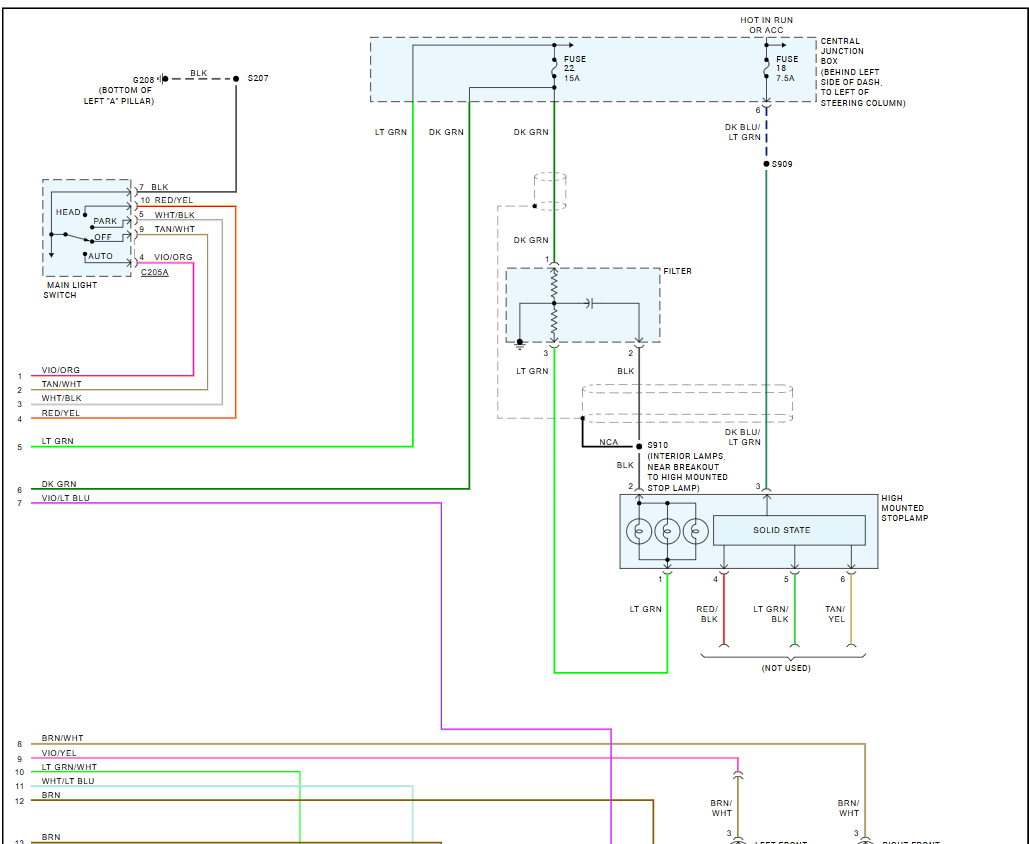 LCM is bad. I need to run a jumper wire from an accessory to the taillight wire, preferably by the LCM until my new one comes in.