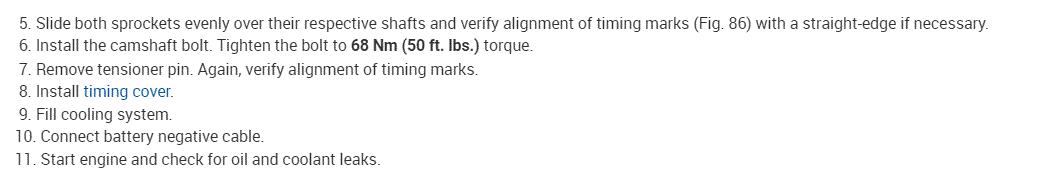 On this vehicle, it is really easy. Once the cover is off, there are only two sprockets to deal with, the crank pulley and the cam pulley.
