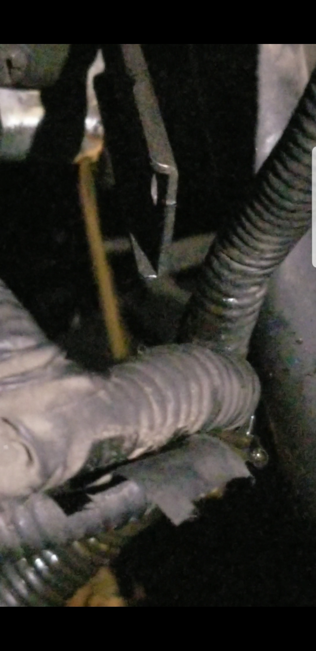 Brown coolant, not from radiator, seems to be leaking from under air intake. Not leaking from hoses, but from the metal part connecting the hoses. Put in stop leak, but seems to not work, yet. Hole is very small, about size of a toothpick.