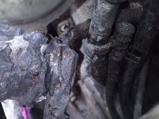 It looks like something melted. If that is something like JB Weld, I can't imagine it is repairable. Try to remove some of that. It may be difficult.