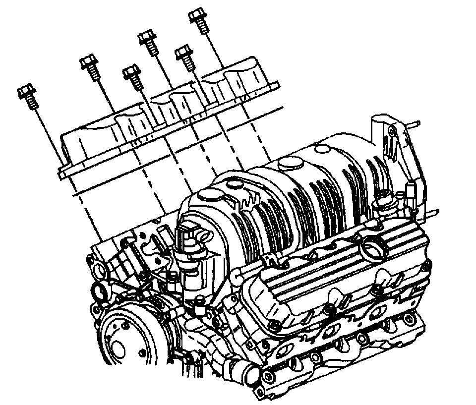 4. Remove the AIR valve/pipe, if equipped. Refer to Secondary AIR Injection Combination Valve/Pipe Replacement in Computers and Controls.