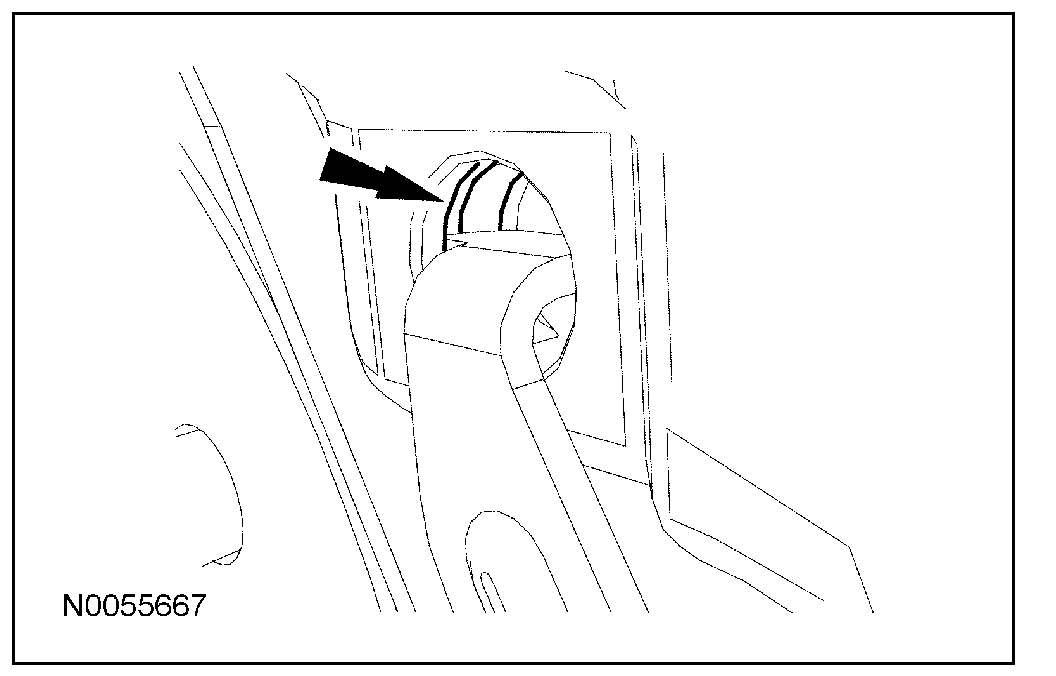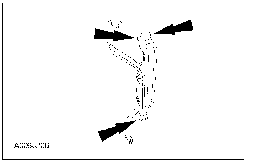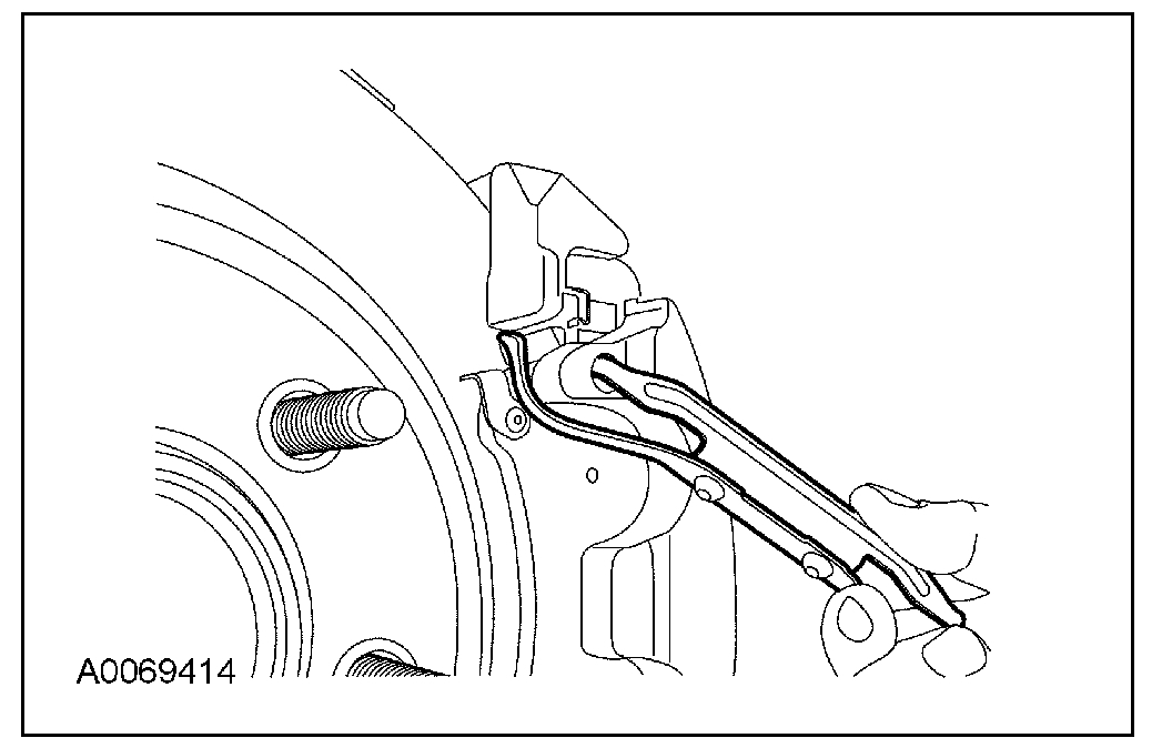 2. Twist the tab into the cavity (LH side in the upper brake caliper cavity, RH side in the lower brake caliper cavity).