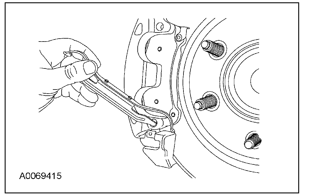 3. CAUTION: If the brake pad anti-rattle spring is to be removed, do not force the spring off the brake caliper or damage to the spring can occur.