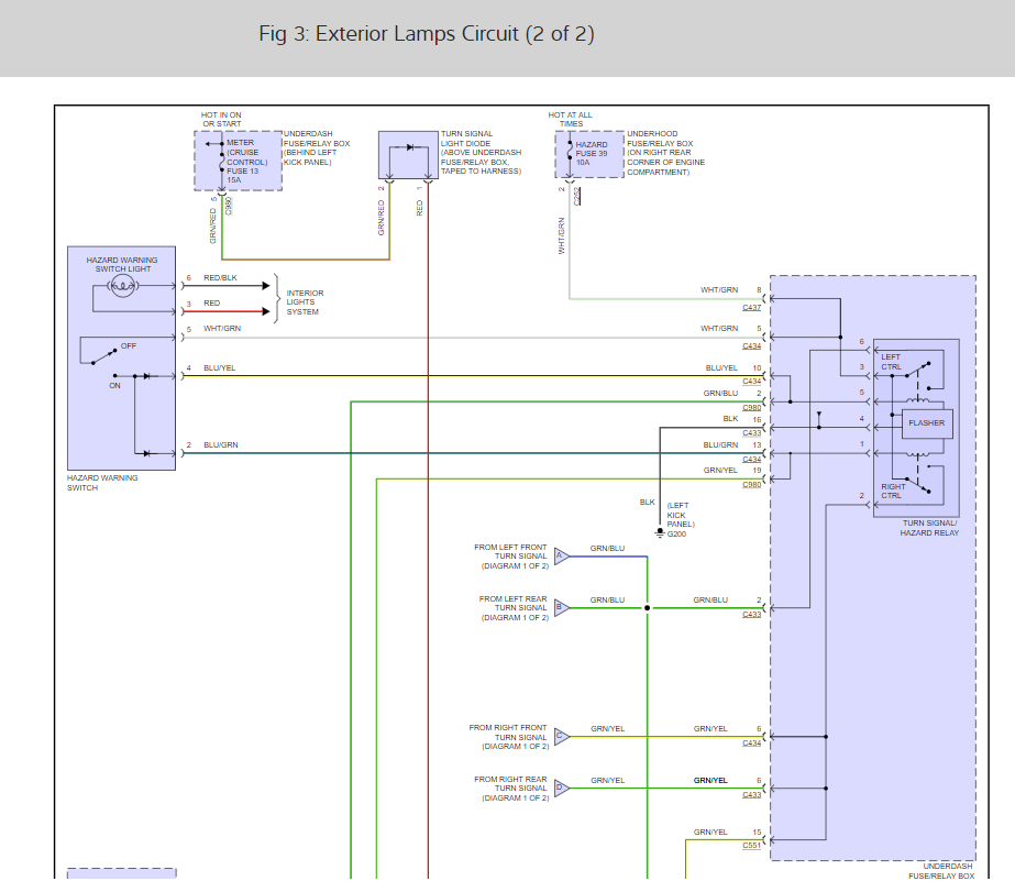 On the left front the low beam headlight, the blinker, and the marker light have positive voltage on both wires. No fuses blown, replaced multi-switch (no change), checked left front ground wires, checked sockets and bulbs, checked blinker relay, checked blinker diode, nothing. I'm stumped, how can both wires be positive and still not blow a fuse, or short out and melt something?