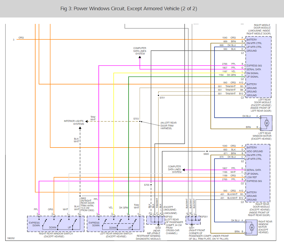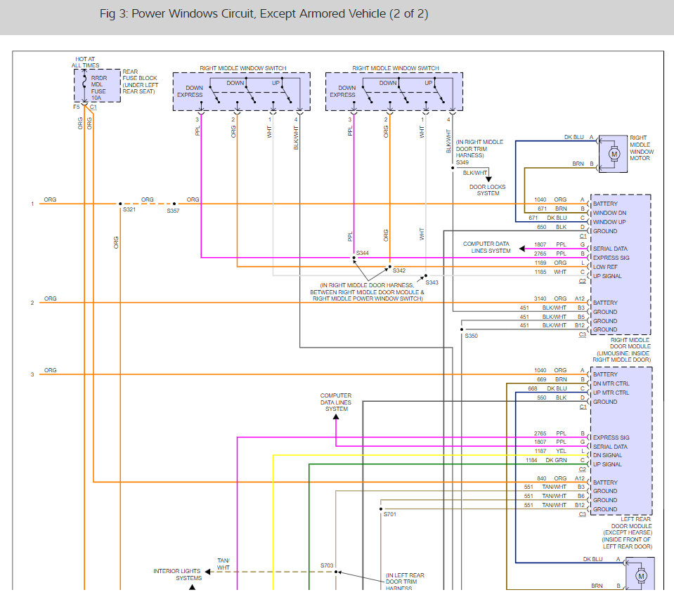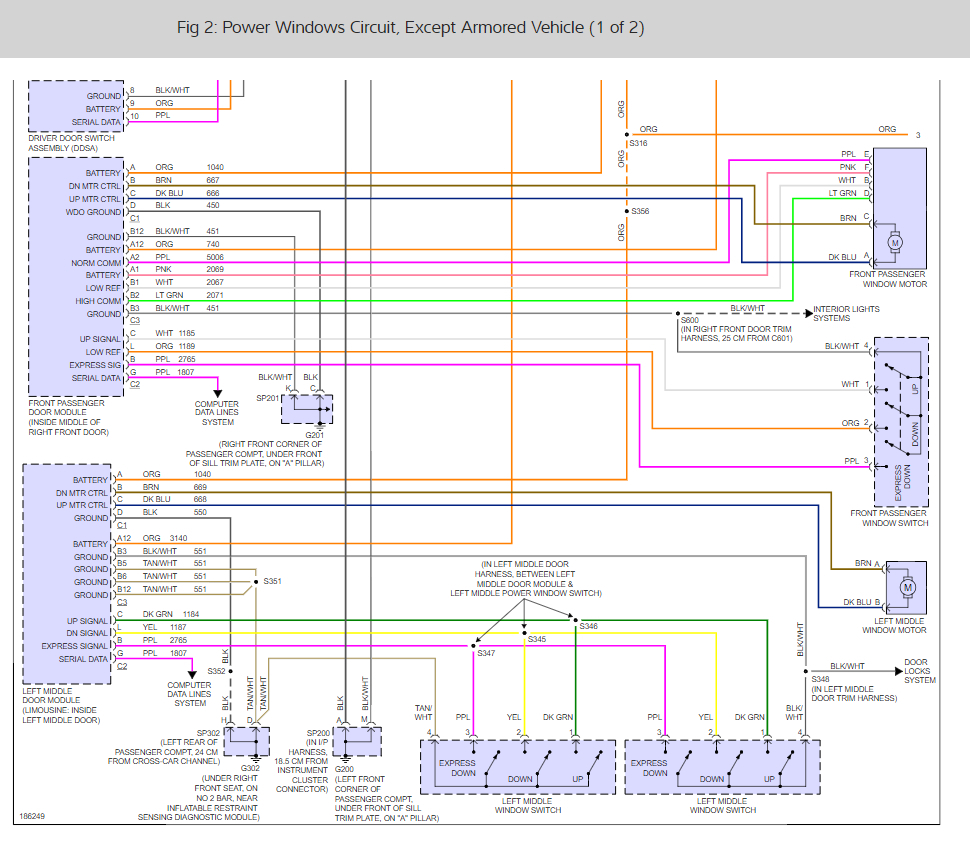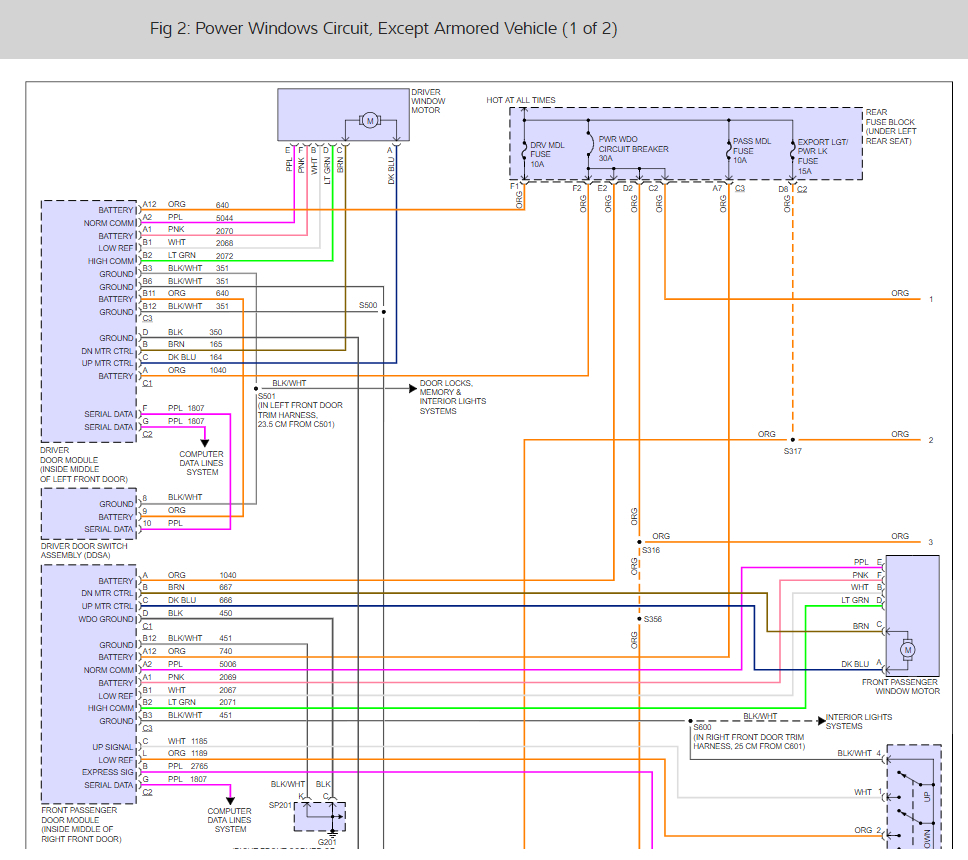 There is not a seperate fuse for each window just the system. It sounds more like the window motor, main switch, window module or door switch has gone out. You will need to test for power at the door switch to determine which is the problem.