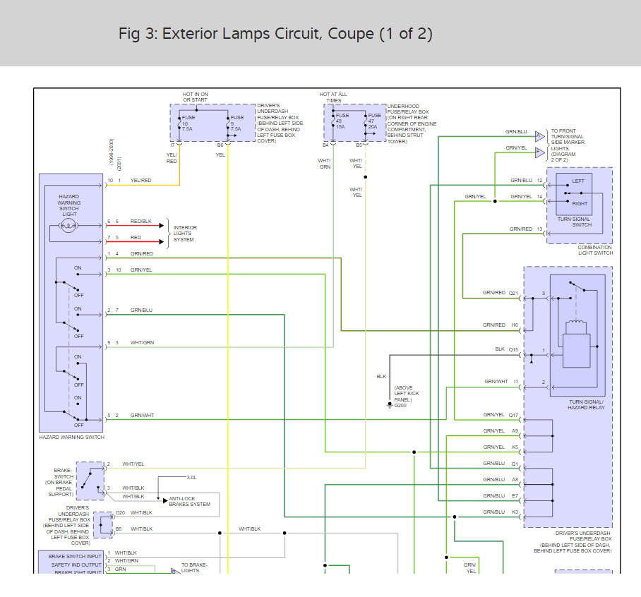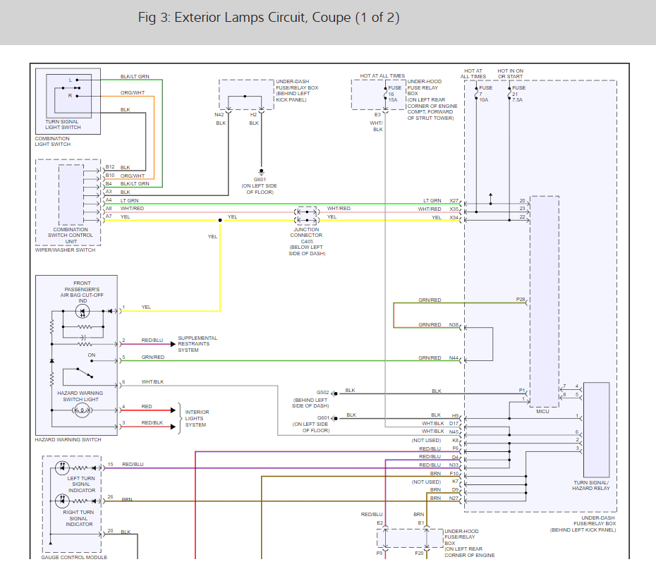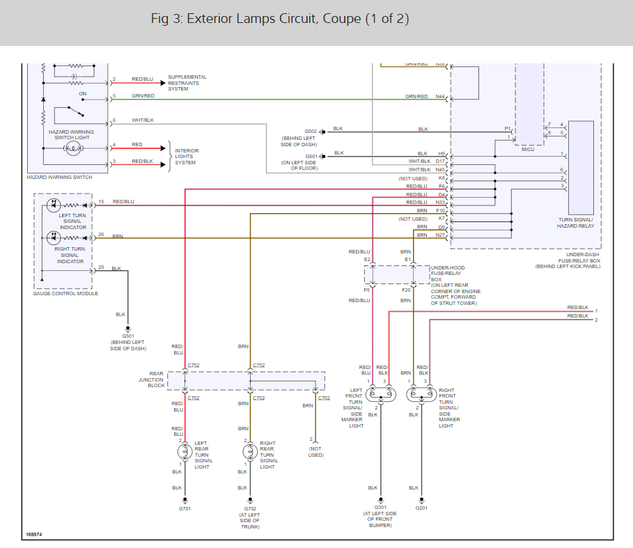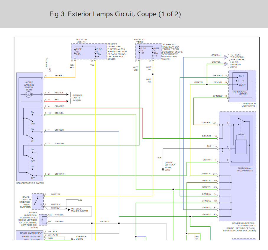 3) Hazard switch only glows the right side signals front and back but the entire left side is not working.