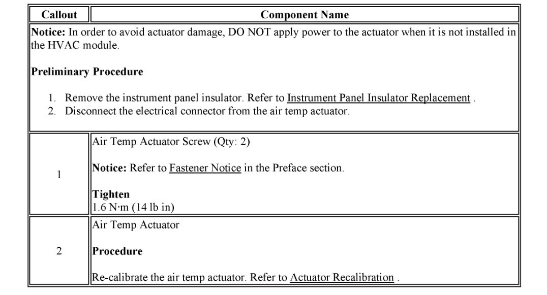 Below is the procedure and a picture of the location of the blend door actuator for the left side.