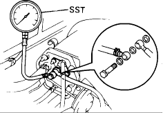If pressure is not as specified, check the vacuum sensing hose and fuel pressure regulator.