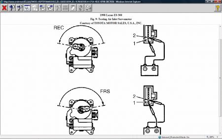 3.Replace air inlet servomotor if it does not operate as specified. If servomotor operates correctly, inspect wiring harness and connectors between servomotor and A/C control assembly. Repair as necessary. If wiring harness and connectors are okay, substitute known-good A/C control assembly. Retest system.