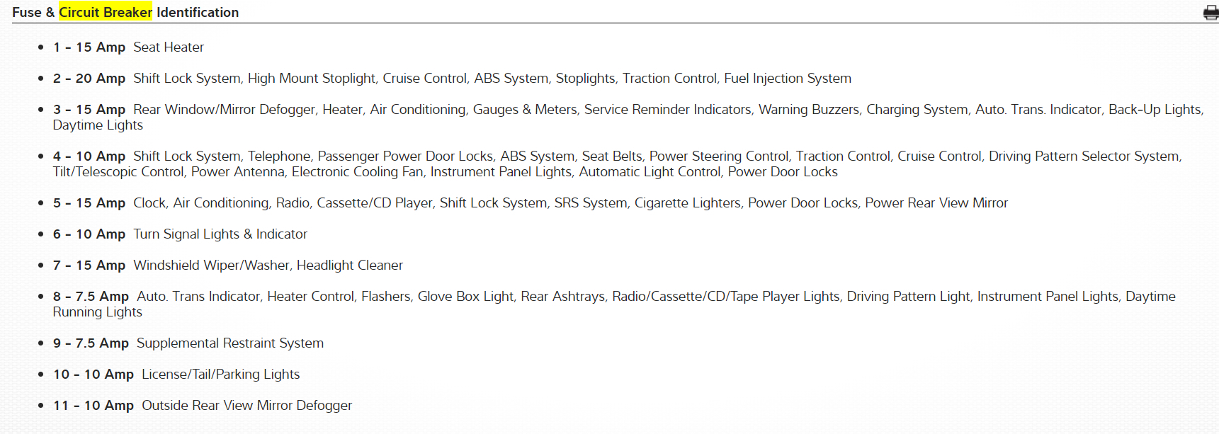 I found a dime in my cigarette lighter. I think it may have blown the fuse that controls the radio, the panel that controls the heat/ac, the cigarette lighter, clock, display that tells the outside temperature, etc. All don't work. The car runs normally, dome lights and interior lights work normally. My fuse box located under the steering column doesn't have a cover and I don't have the booklet for my car so I don't which fuse I need to change to fix this. Can someone help me out with telling me which fuse(s) I need to change or send me a book or pic. Thanks.