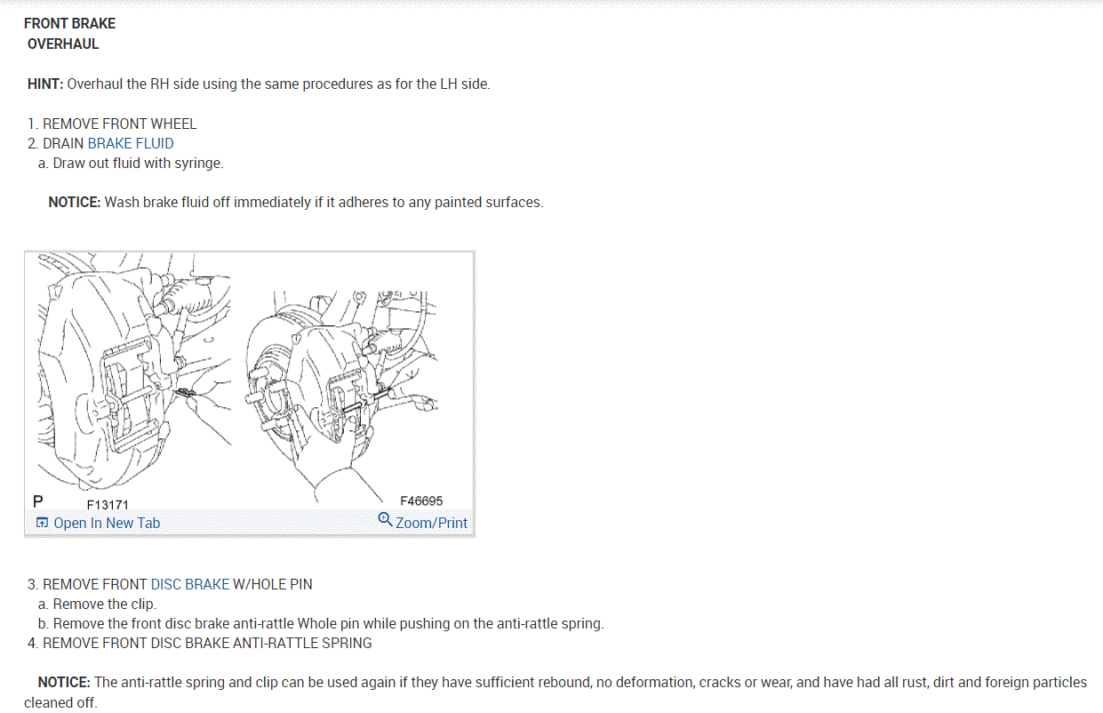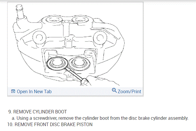 Note: The directions below are for an overhaul and include directions for brake pad inspection, brake rotor inspection, and caliper overhaul. I'm adding them in the event you find additional issues. If there are no problems with the caliper, skip that section.