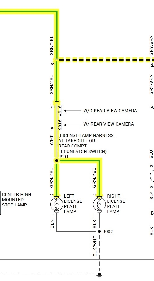 No fuse in the circuit, it is fed directly from the body module. It's possible you have a bad ground or the connector in the harness is corroded. To test for a bad ground get a cheap test light, remove one of the bulbs and turn on the lights. Now connect the test light to a good ground and probe the bulb socket. Do you get a light on one terminal? If yes, it's likely the ground has failed. Look at the other lamp while testing, it's possible that a bad ground would show itself when you touch the ground terminal in the socket as they are connected together. If you find no voltage on either terminal, then skip to the Body module and locate the green wire with a yellow stripe on pin 13 in connector X4 use a back probe needle and see if there is power there with the lights on. If there is power there, then the issue is in that wire where it runs through the harness. Then you go find the two inline connections in the harness. X900 (near the hinge area for the rear trunk lid) and X915 (at the rear of the central trunk lid) and see where the power stops. I would suspect the common wire breaking issue where the wire flexes.