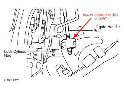 I'm replacing the lock actuator on this SUV listed above and am on the 99 yard line. I have the actuator unbolded, the latching mechanism unbolted, the yellow clips on the side latching rods unclipped but there is another rod, the one that connects the latch handle on the outside of the lift gate to the latching mechanism inside the door. It is also attached with a "clip" but, for the life of me, I can not figure out how this clips works, that is, I can not determine how it 'unclips', can not see a 'tab' or a hinge side on the clip, can not tell if it opens up, down, inboard or outboard. Can you provide advise, or a picture of this plastic 'quick disconnect' clip? I don't want to break it. Again, its rod that connects the interior mechanism to the exterior flipper handle. With this problem overcome, I can remove the mechanism and replace the actuator (rod) then reassemble.