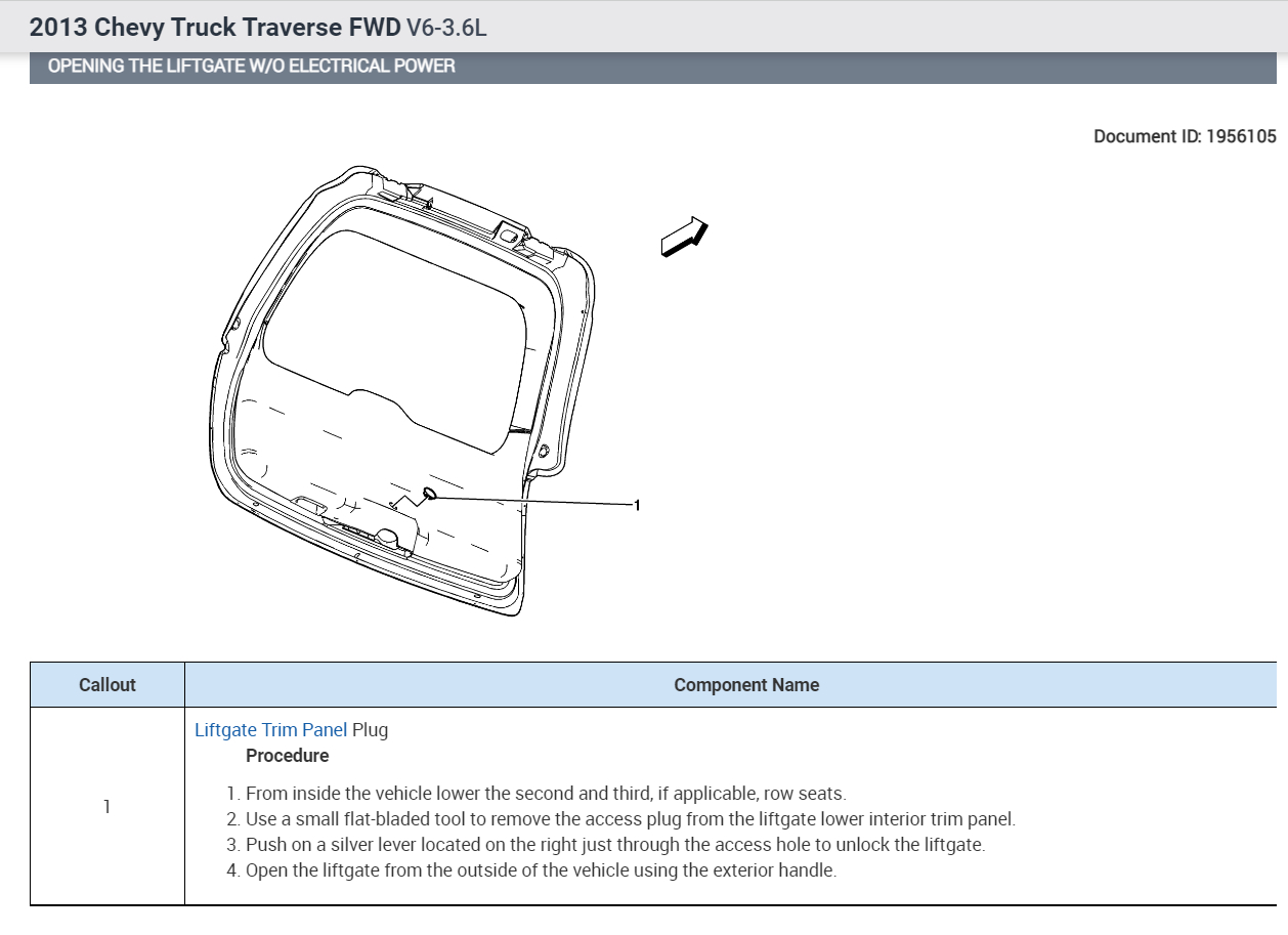 My back liftgate hatch will not open. It is stuck closed. I have tried everything to open it. The display with I start the car says it is open, although it is stuck closed. How can I open it to fix whatever part is malfunctioning?