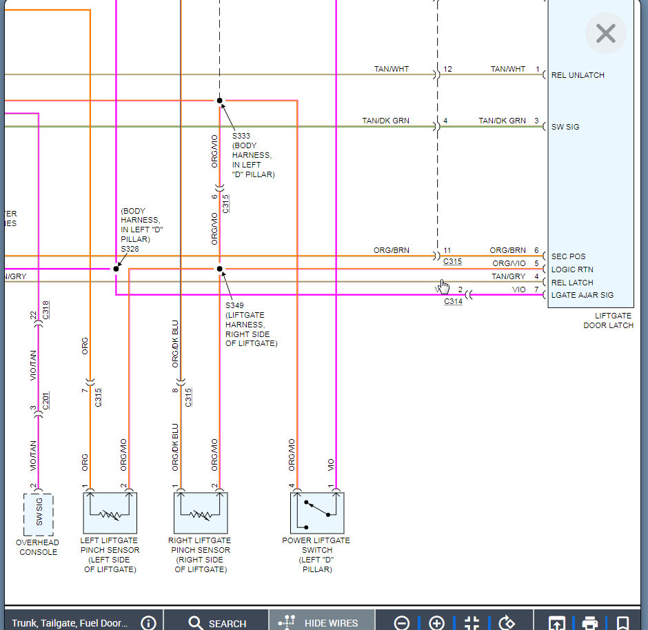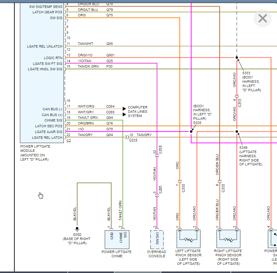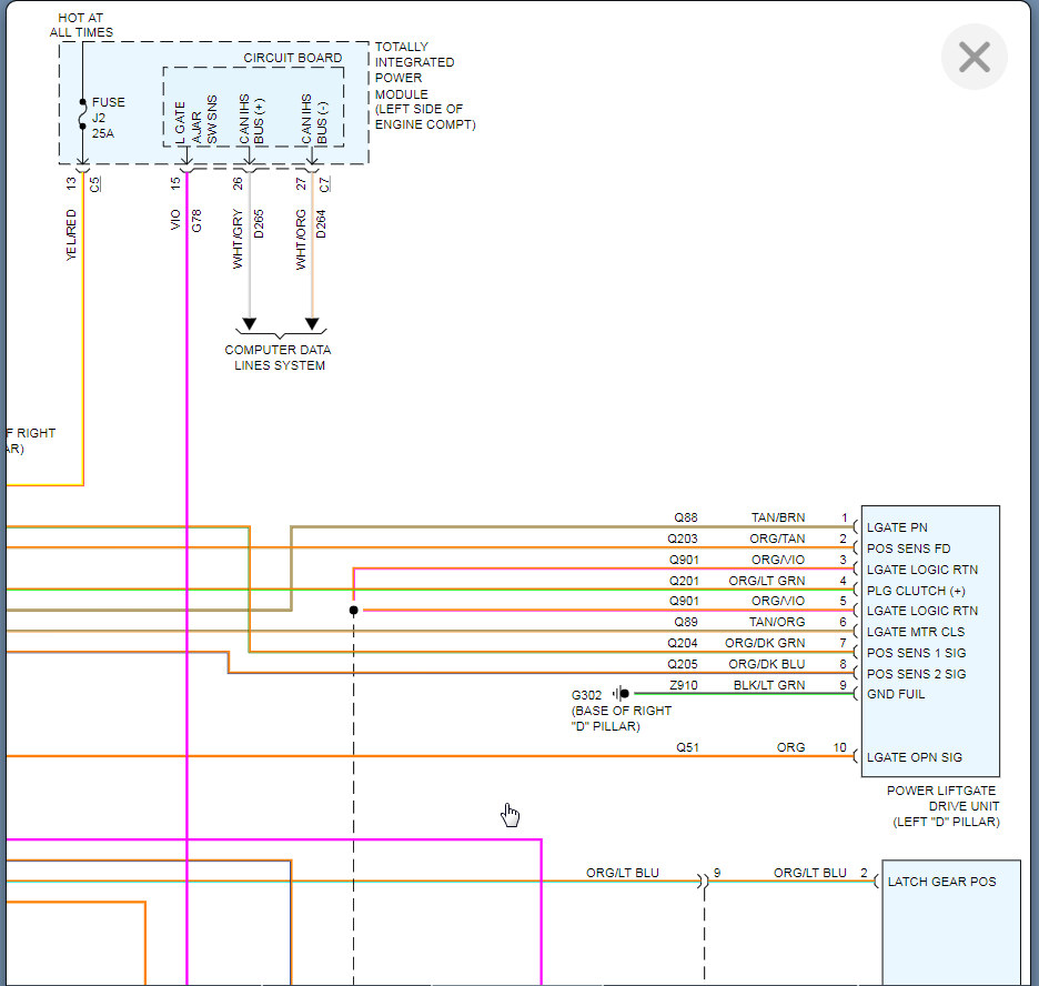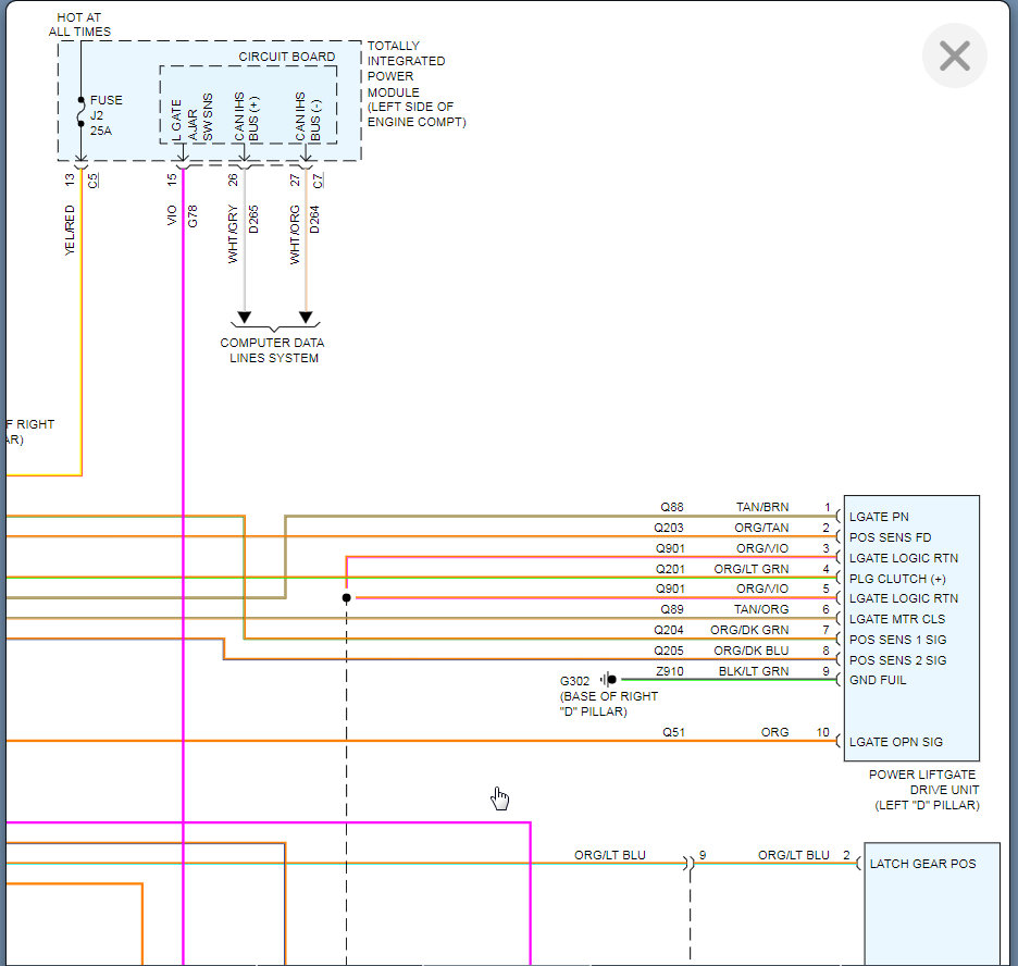 No response from key fob or from console buttons. Lock doesn't seem to actuate, press key fob from outside no taillight flash or chime. I have opened it manually through the access panel and I did replace the latch mechanism with another used latch after finding switch on latch with high resistance. Leaning now towards pinch sensors. Did check lift-gate module in fuse box looked okay. Any input helpful.