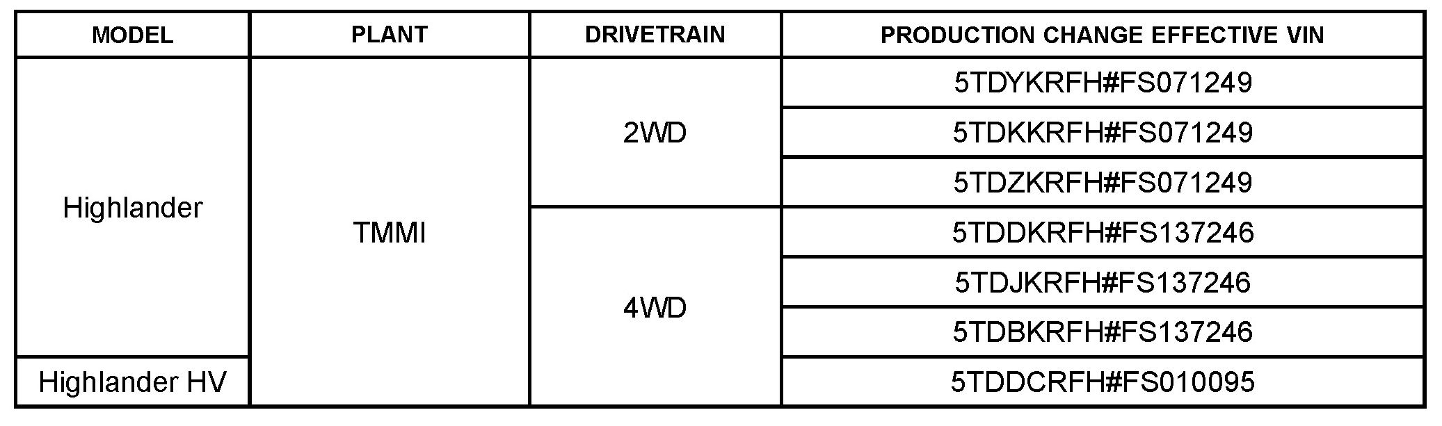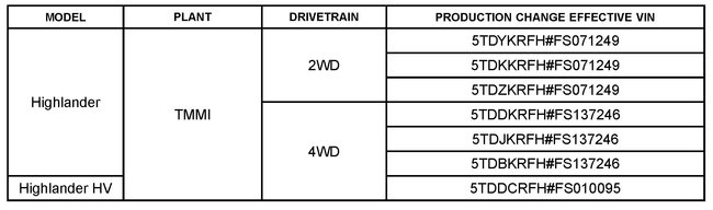 This bulletin applies to vehicles produced BEFORE the Production Change Effective VINs shown.