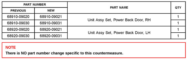 3. Remove and replace the LH and RH power back door actuators (Unit Assy Set, Power Back Door) with the NEW parts.
