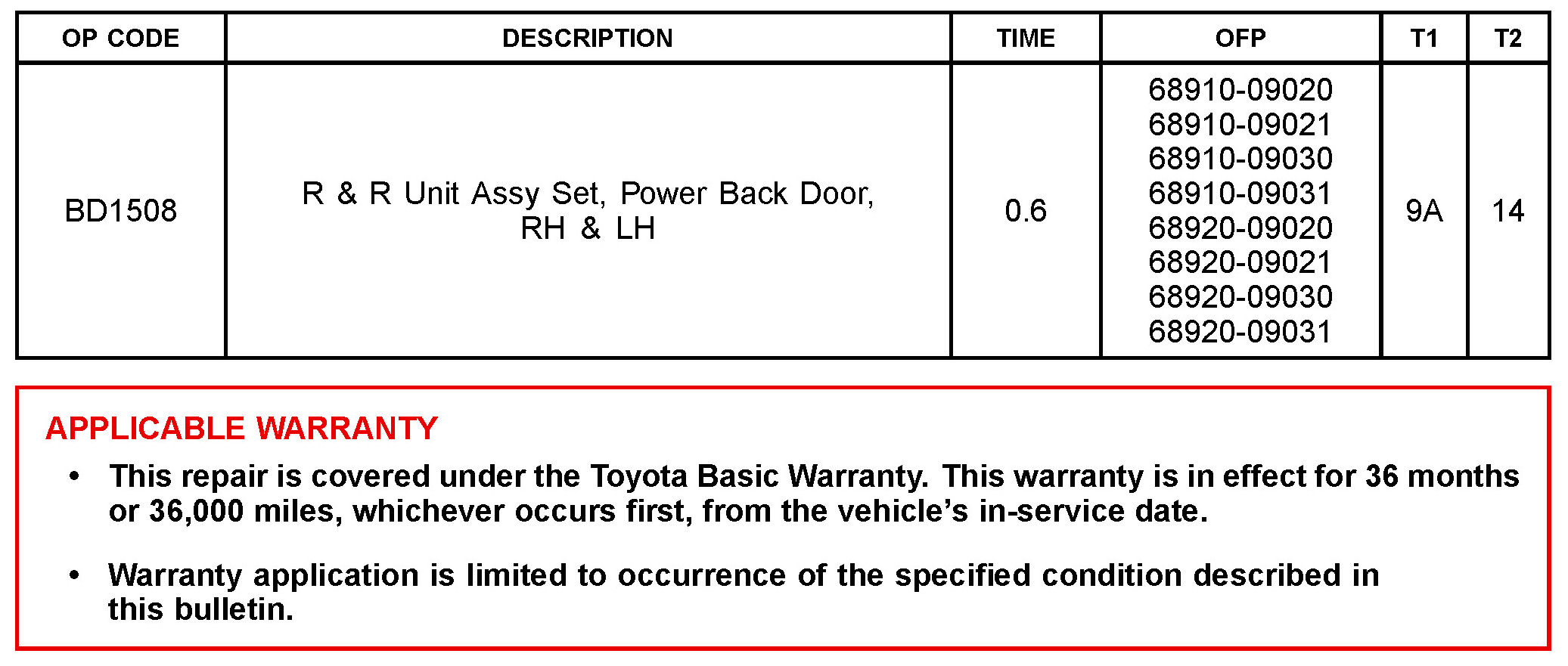 Some 2014 2015 model year Highlander vehicles may exhibit a condition in which the power back door starts to open or close normally, then intermittently stops and beeps twice. In most cases no current DTC is present, but DTC B2226 or B2227 (PBD Unit Pulse Sensor LH/RH Circuit) may be in history. Follow the Repair Procedure in this bulletin to address this condition.