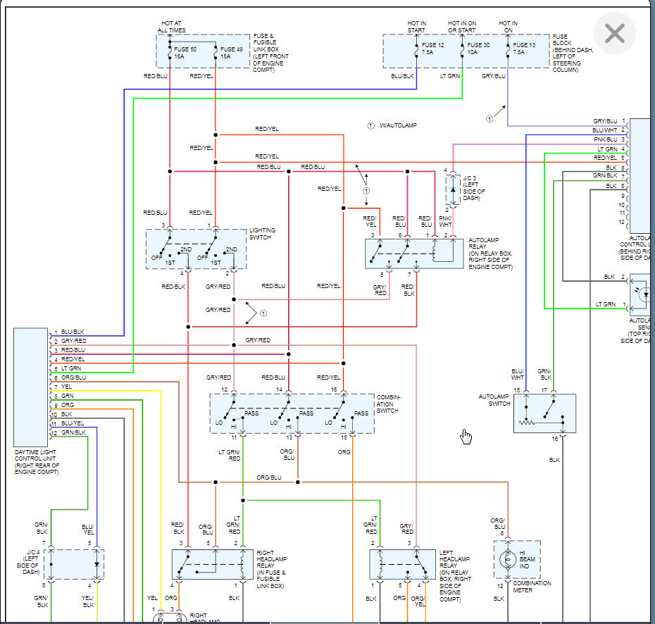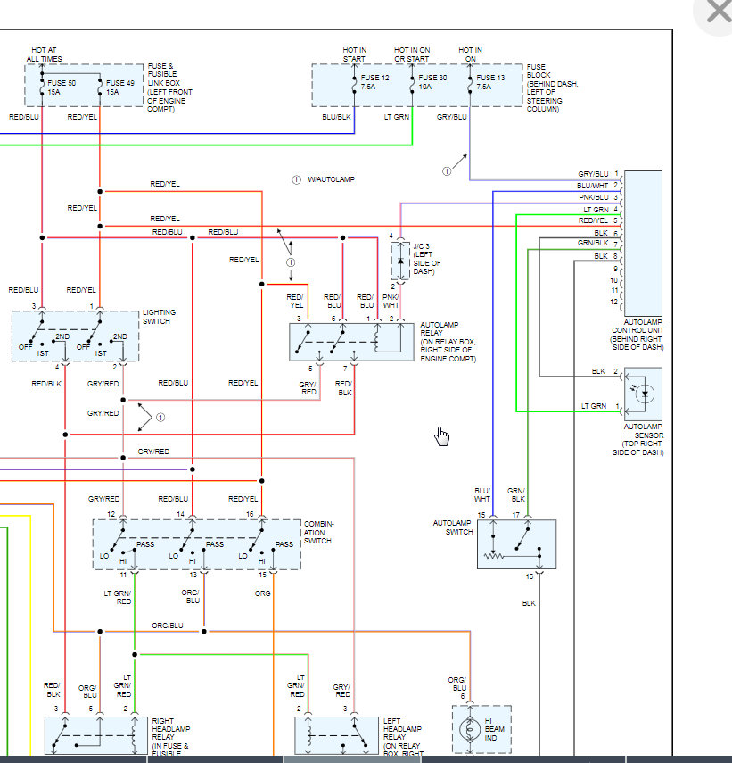 Try removing the fuses shown in the diagram and note when/if the lamps go out. If we can start finding some things that effect the lamp then we can narrow down the issue.