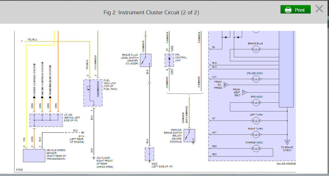 I have included the wiring diagrams for your vehicle's instrument cluster in the diagrams down below. Please get back to us with what you find out.