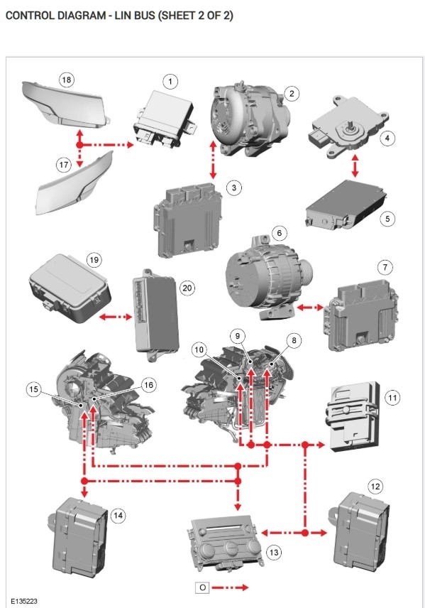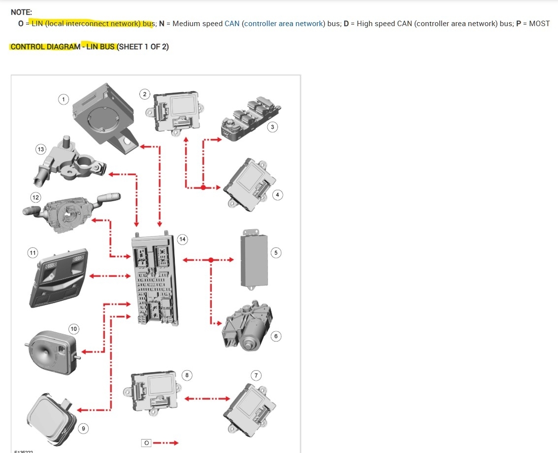 Hello, is there a specific module that is setting the LIN Bus code? A quick look at the network wiring diagrams show there are multiple Lin bus networks for this vehicle. To begin with, Lin Bus is a 1 wire network that is 0-12volt signal, The Body Control Module (BCM) shows 5 Lin Bus networks coming from it. So far I think I count 34 modules on the Lin, but these modules will also talk on other networks as well, depending on how critical they are. Ill get these diagrams ready and highlight all the Lin wires, Theres 3 pages of Network diagrams, so it will take a couple minutes.