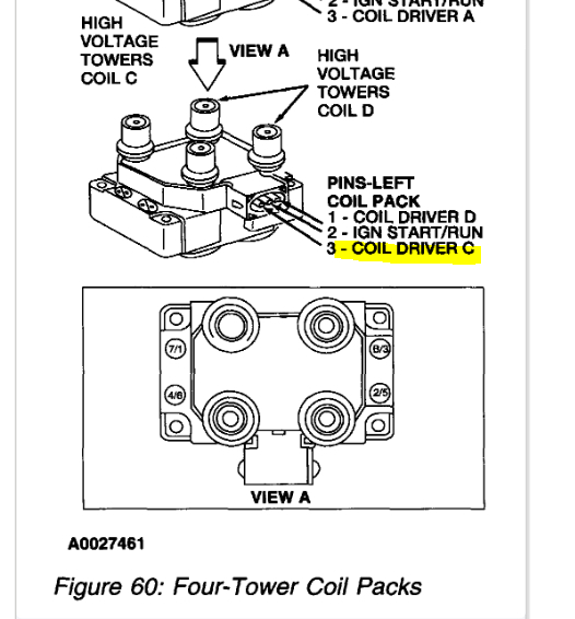 This vehicle has two different possible coil designs. One is each spark plug has its own coil. The other will include two coil towers responsible for four spark plugs each.