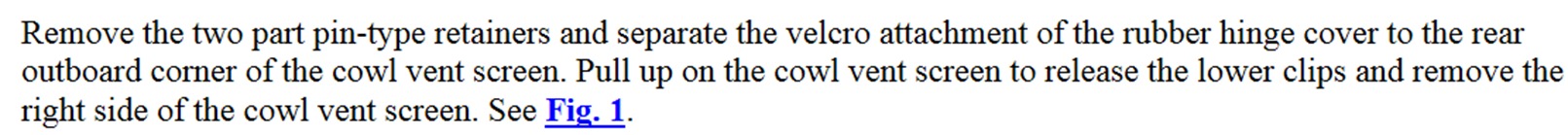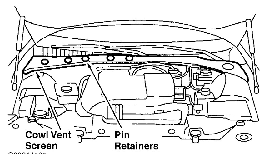 It's under cowl, have to remove the cowl side trim pieces, then remove the wiper pivot arms. Remove the cowl vent screen retainer and disengage retaining clips and position cowl vent screen aside.