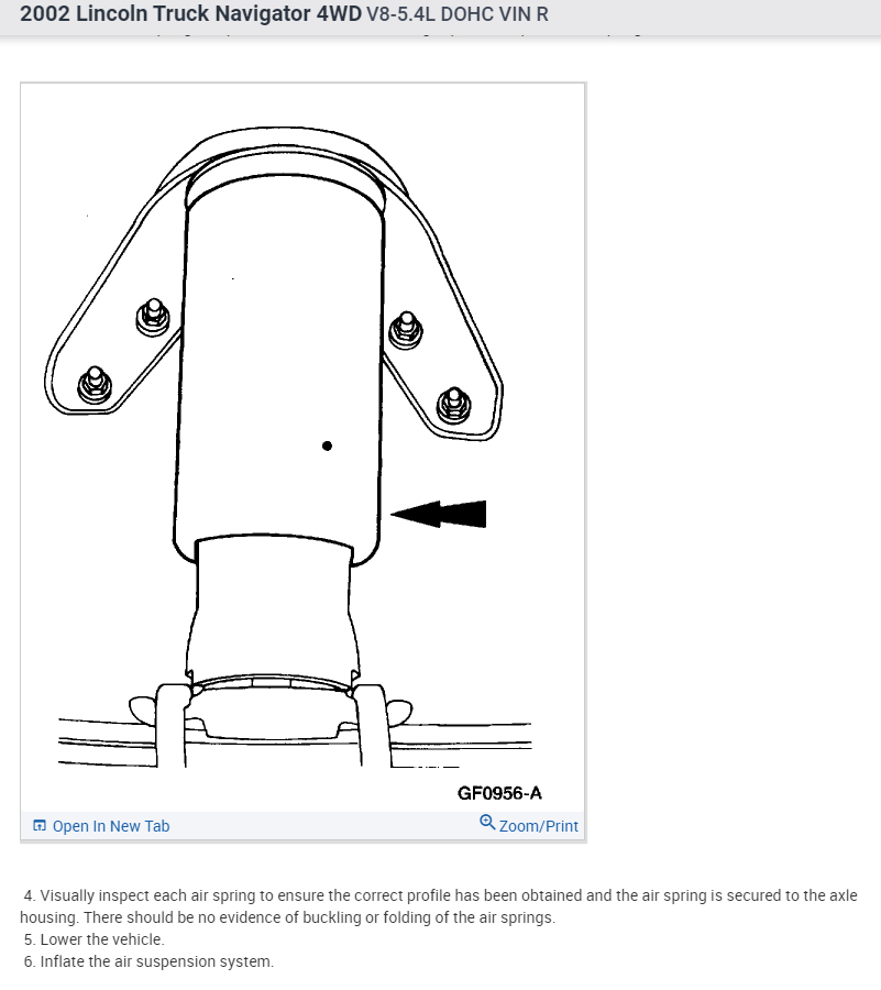 I have attached the factory air spring replacement procedure, for anyone who might be looking for those instructions.