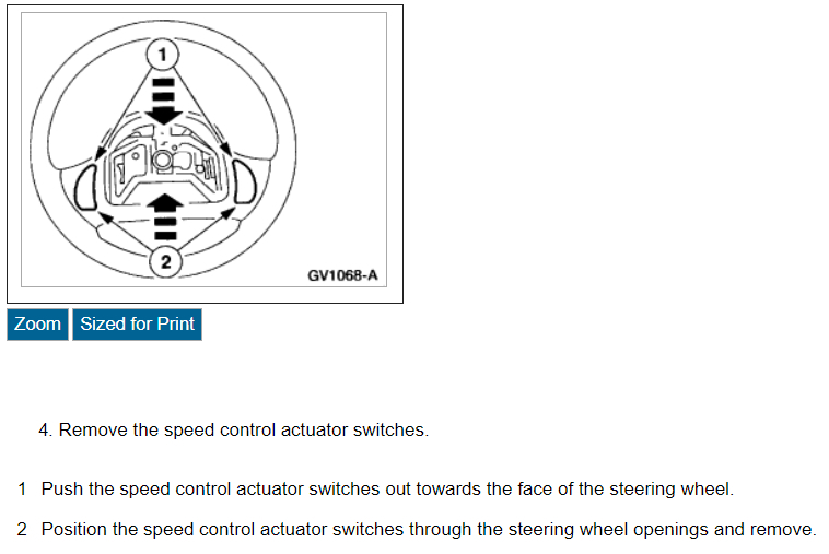 Disconnect the battery first to disarm the airbag system. Here are diagrams to help you see how to replace the cruise control switches below.