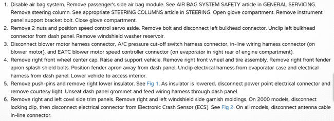 I would like a step by step process on how to replace the heater core on a 1998 Lincoln Town Car. It would also be helpful if possible, to have diagrams as well.