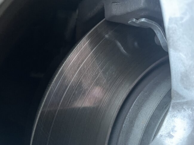I changed the brakes and rotors a few months ago and have had these lines on only one brakes rotor. Is it normal for it to look like this not too deep groves? It has changed over time from with different lines and then recently it got that one deeper looking line that goes around like in the picture. Is it also normal to only be happening in on one side?