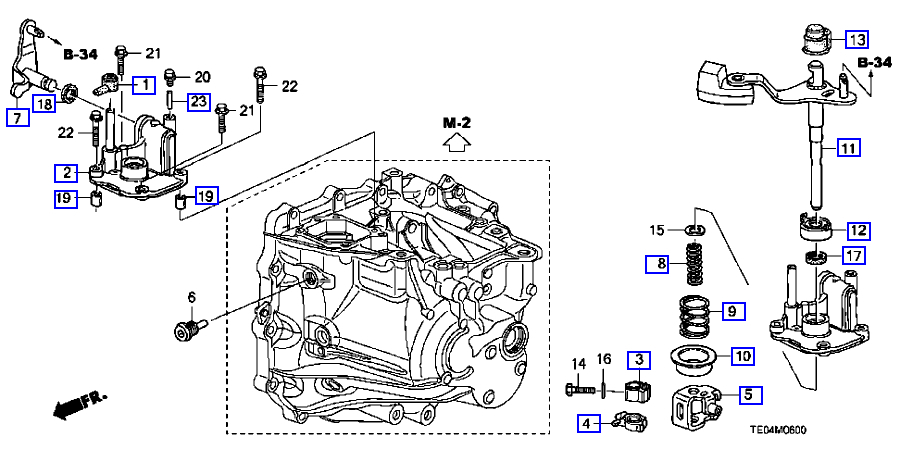 I am looking to find name or diagram of five speed so I can no the exact of what the parts are. But it only had the top gears of shift pattern witch were 1, 3, 5 and 2, 4, R, did not work. And just now when I went to put in first the gear would not catch any gears at all. I took off the center console to look under at the shifter. And the part looks like a type of air shock (compared look is like a screen door air shock).