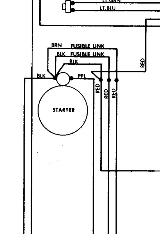 Check the fusible links that bolt to starter they are brown or black then go to a different color wire. Make sure the flywheel teeth aren't all ground down and you are getting correct starter. Purple wire goes to "S" terminal on solenoid.