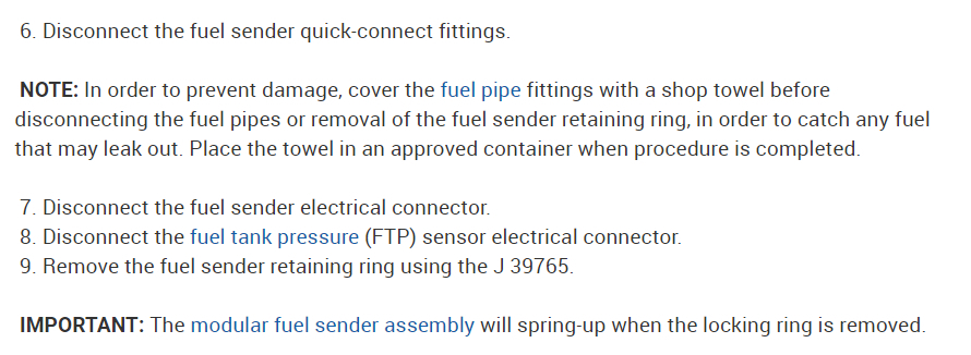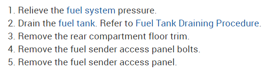 Luckily, you will not have to remove the gas tank because you have an access panel. I've attached picture steps below on how to replace the fuel pump on your car. Hope this helps and thanks for using 2CarPros.