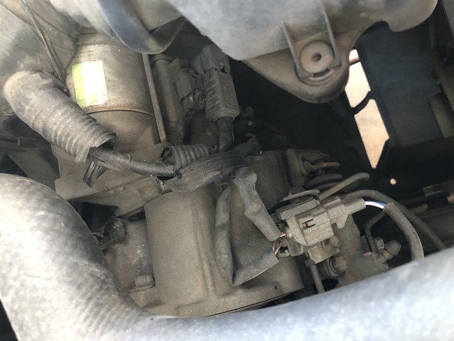 Unfortunately I cannot see it in those pictures because it appears to be just under the air filter box. Please see the attached pictures. I have tried to circle the area of the transmission so you can start orienting yourself. As you progress through the pictures it actually get more narrow until I zoom in on the area.