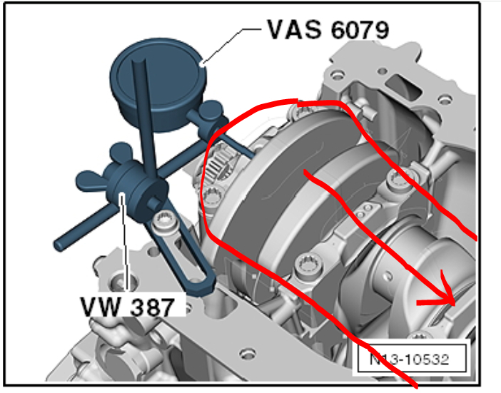 The engine crankshaft is internal to the engine. I was able to find a pic showing how to check it. The picture is of the engine, upside down, and with the oil pan removed. I circled as much as I could. Note the arrow in the pic. That is just to indicate it continues to the opposite side of the engine block.